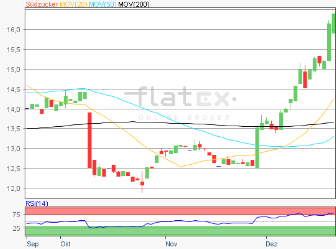 Die Aktie des MDAX-Konzerns Südzucker notierte am 25. Oktober 2018 bei 14,57 Euro auf einem Hoch.