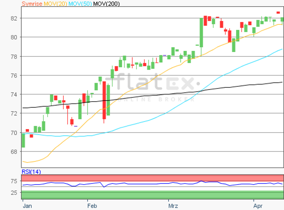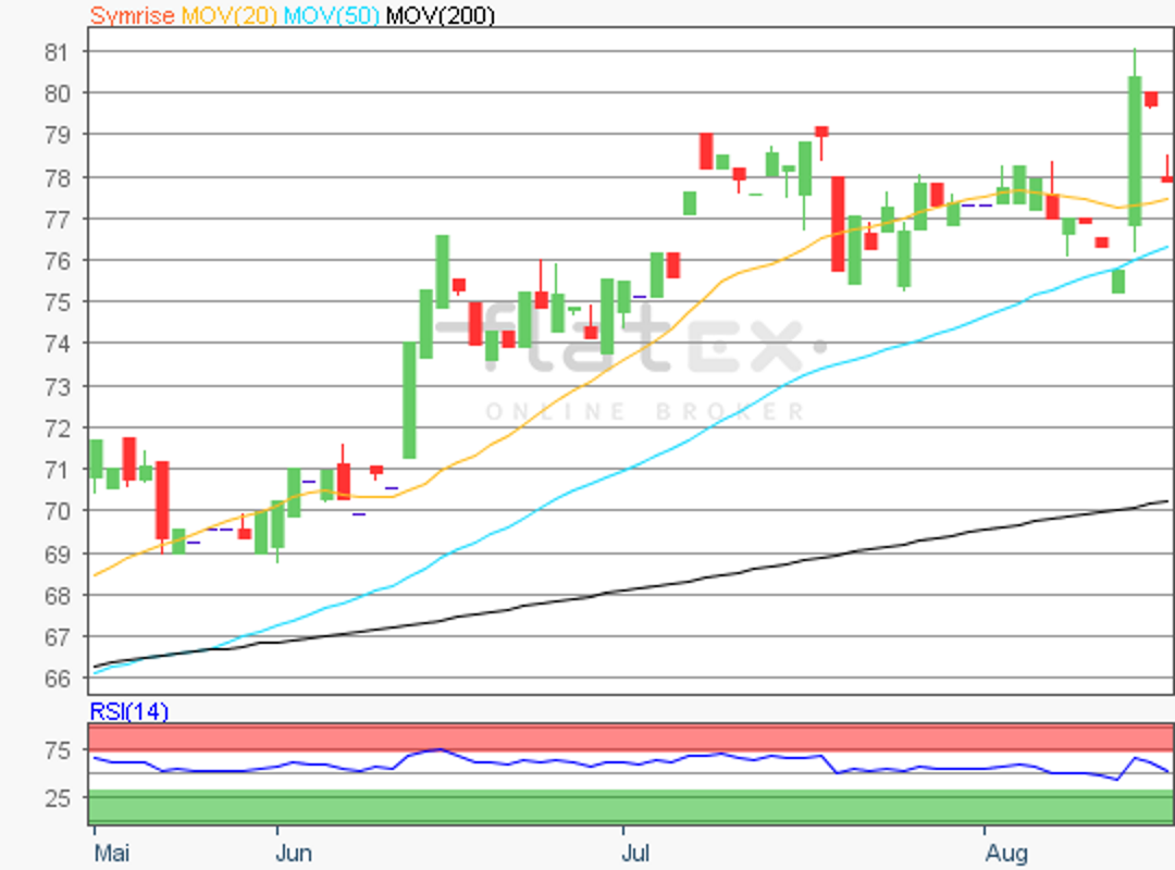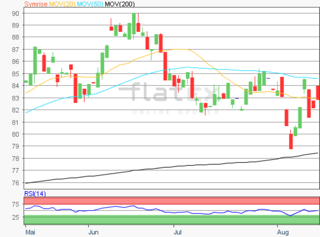 Die Aktie des MDAX-Konzerns Symrise bildete am 14. August 2018 bei 81,43 Euro ein Hoch aus.