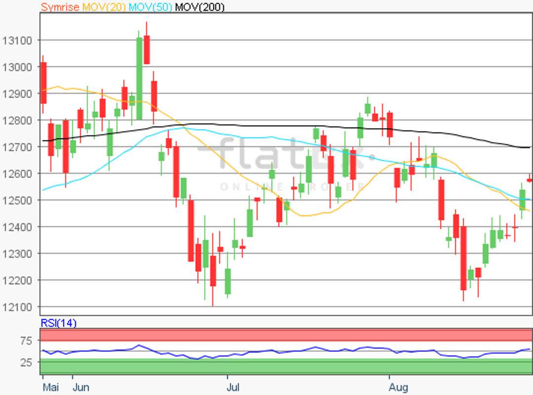 Die Aktie des MDAX-Konzerns Symrise notierte am 30. August 2018 bei 81,72 Euro auf einem Hoch.