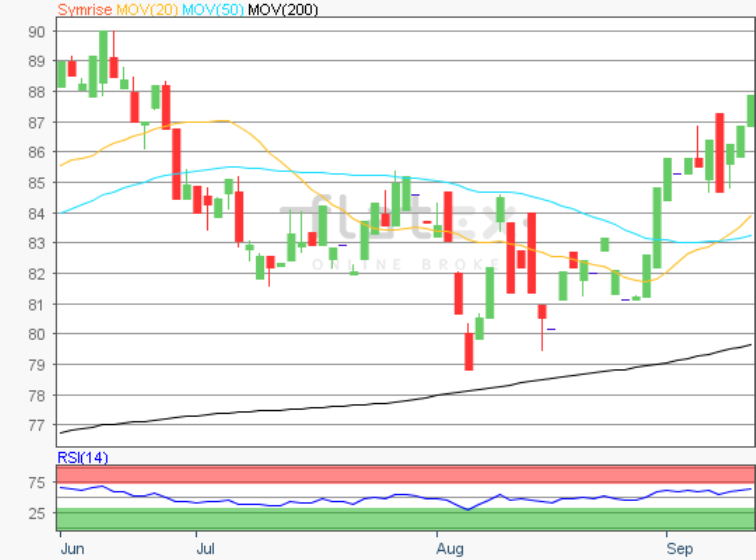 Die Aktie des MDAX-Konzerns Symrise notierte am 01. Oktober 2019 auf einem letzten Zwischenhoch von 90,24 Euro.