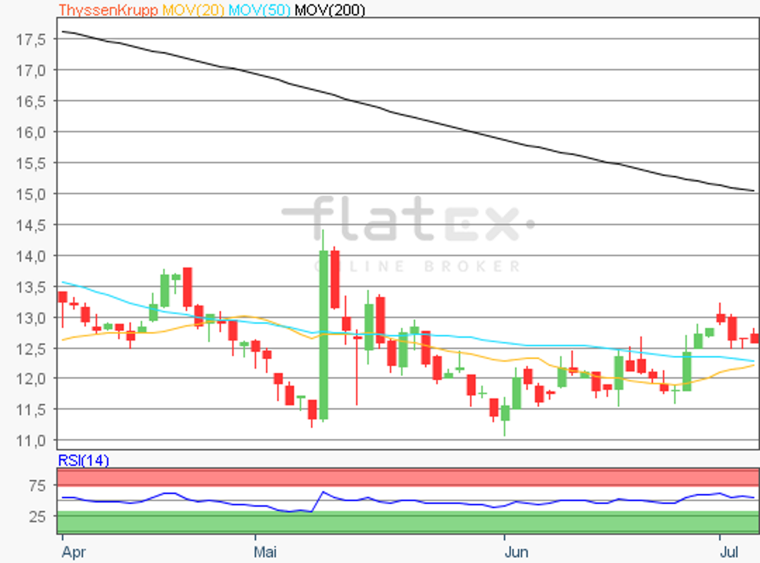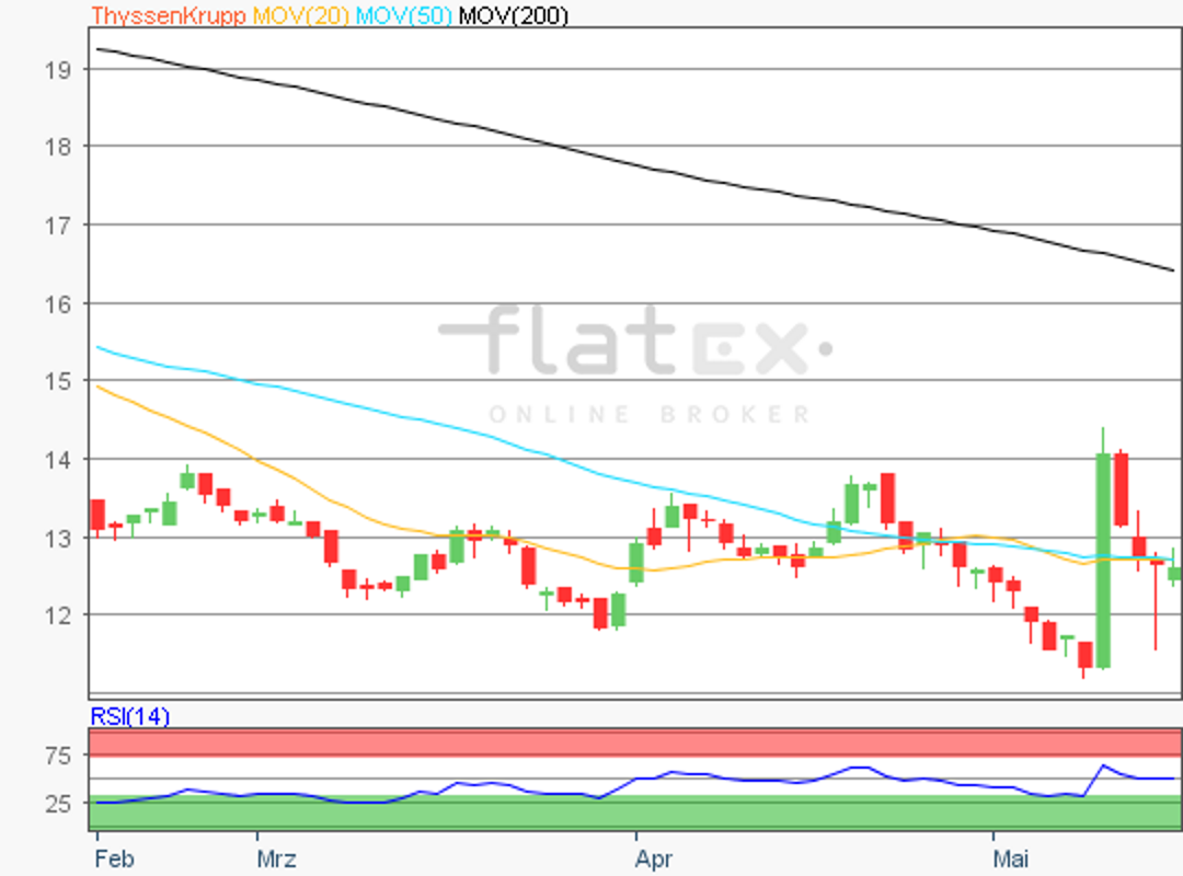 Die Aktie des DAX-Konzerns ThyssenKrupp bildete am 03. Juni 2019 ein letztes Verlaufstief von 11,03 Euro aus.