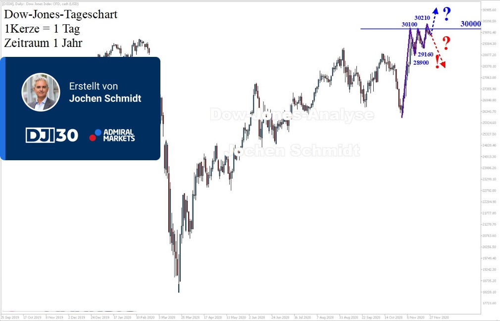 Dow Jones: Mit dem Erreichen der 30.000 Punkte-Marke befindet sich der Dow in einem neuen Aufwärtstrend | Chartanalyse | Markttechnik | Daytrading