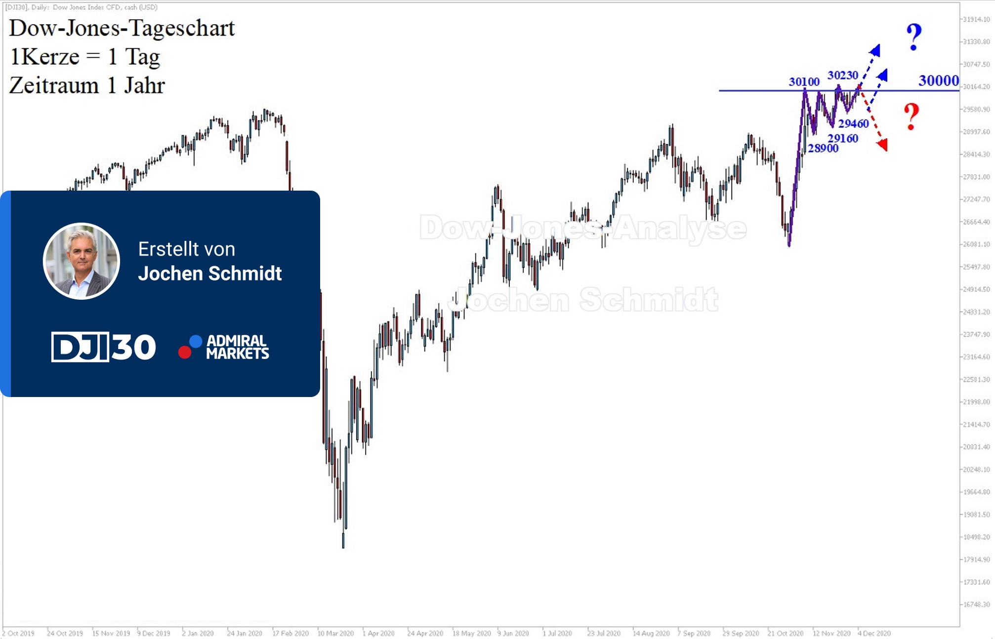 Dow Jones: Der Aufwärtstrend ist mit Überschreitung der 30.100 intakt! | Chartanalyse | Markttechnik | Daytrading