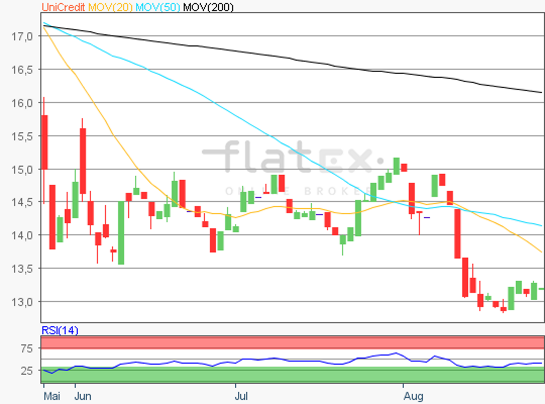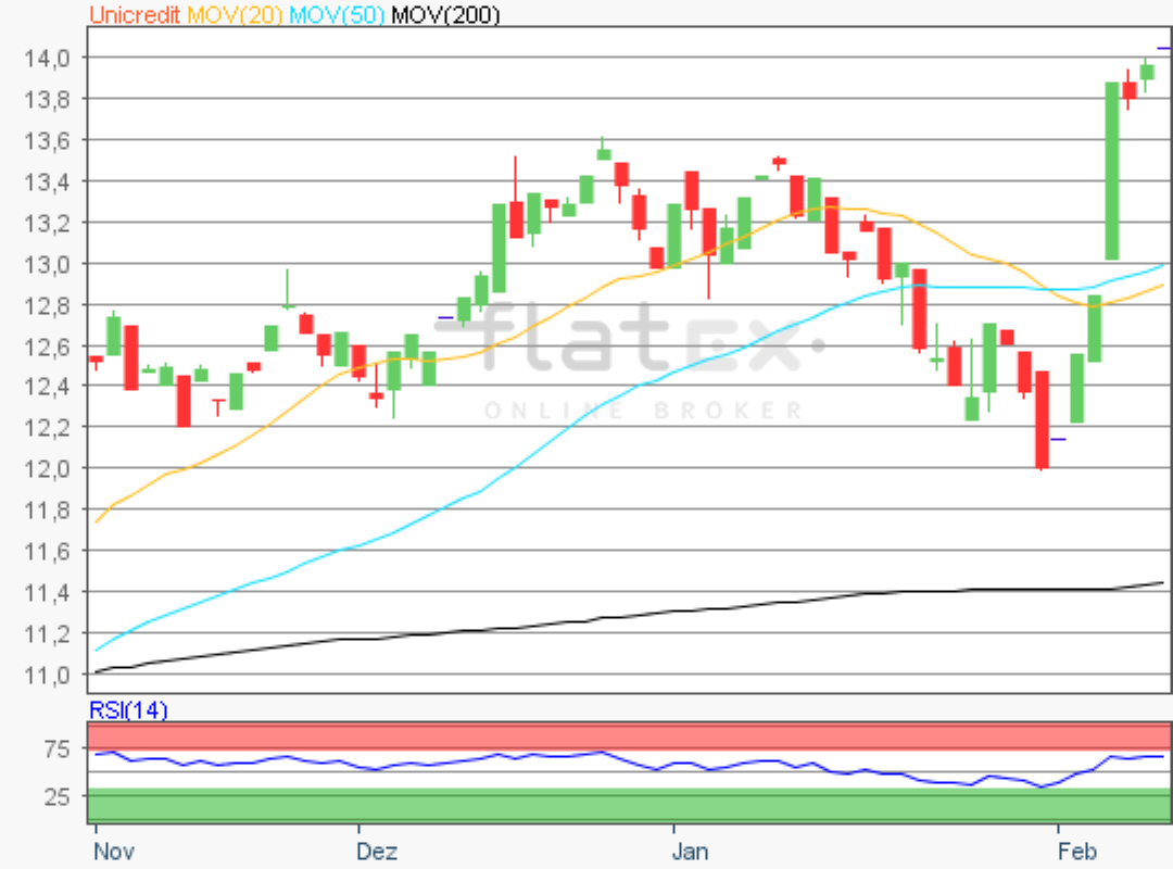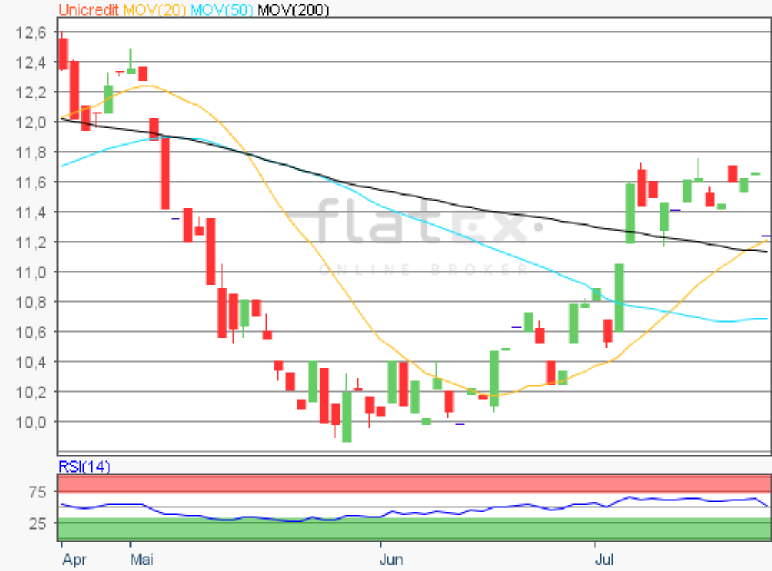 Die Aktie der italienischen Großbank Unicredit bildete am 06. Juni 2018 bei 13,53 Euro ein Verlaufstief aus.