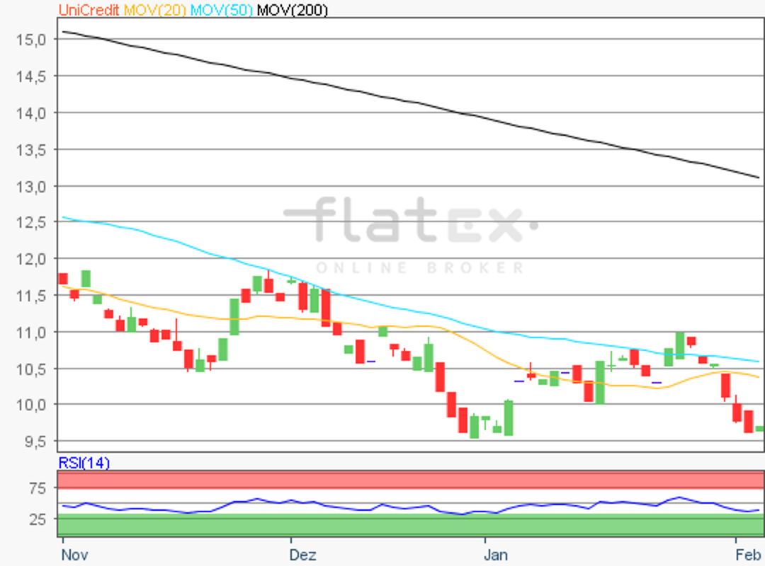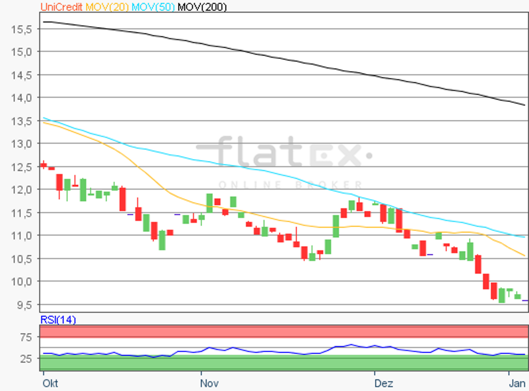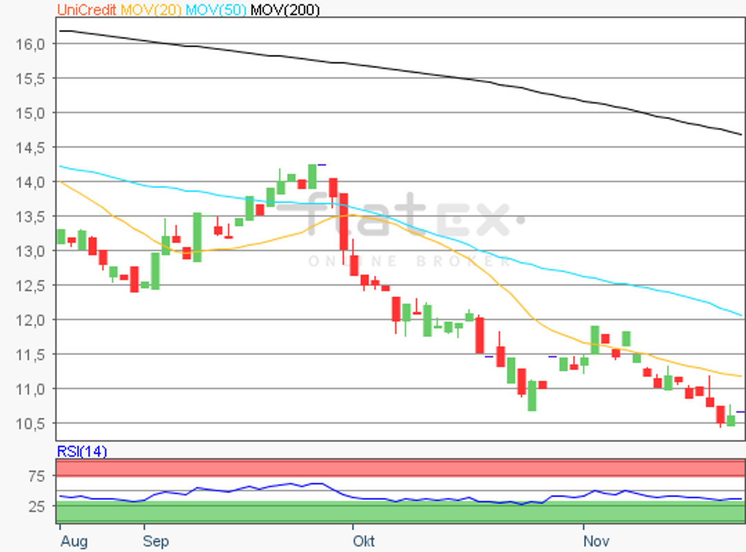 Die Aktie der italienischen Großbank UniCredit notierte am 20. November 2018 bei 10,38 Euro auf einem Verlaufstief.