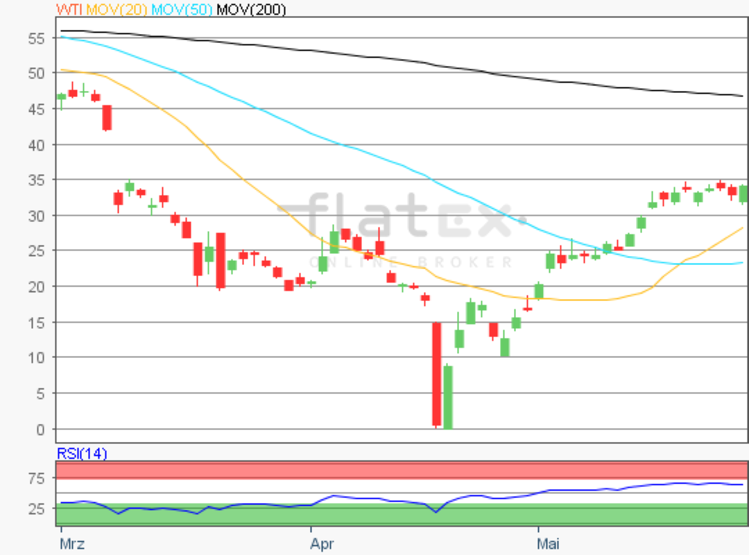 Der Preis für ein Fass Rohöl der US-Sorte WTI (West Texas Intermediate) näherte sich am Dienstag bereits der noch offenstehenden Kurslücke vom März.
