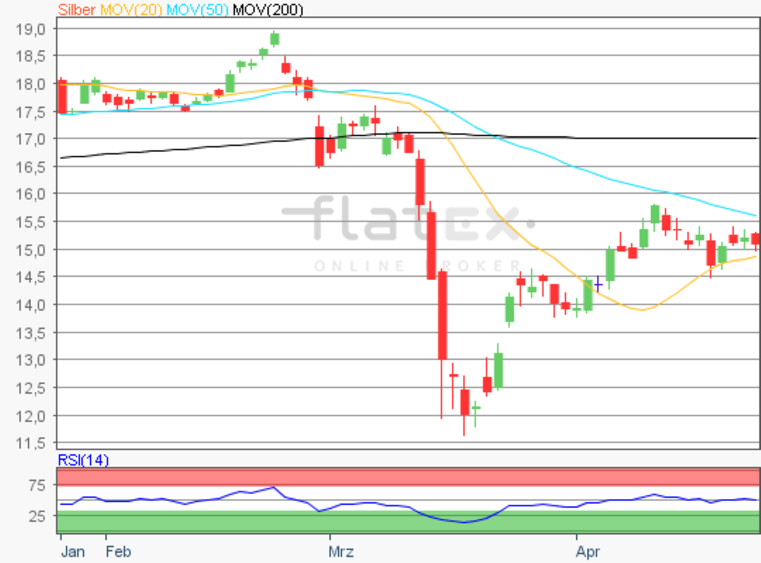 Der Preis für eine Feinunze Silber fiel im Einklang mit den Aktienmärkten im Rahmen der Corona-Pandemie seit dem 24. Februar 2020 enorm in die Tiefe.