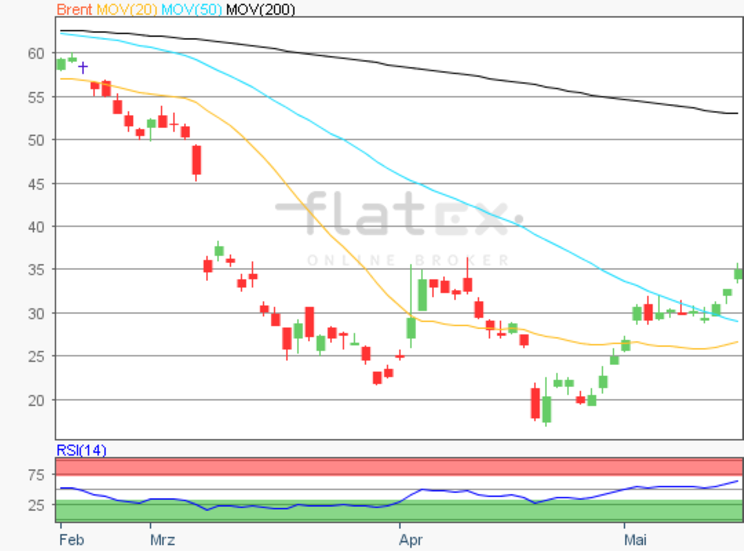 Der Preis für ein Fass Rohöl der Nordseesorte Brent im Juli-Kontrakt an der ICE konnte zum Wochenbeginn an die deutliche Erholung anknüpfen.