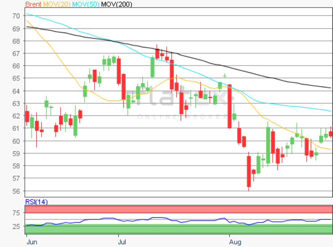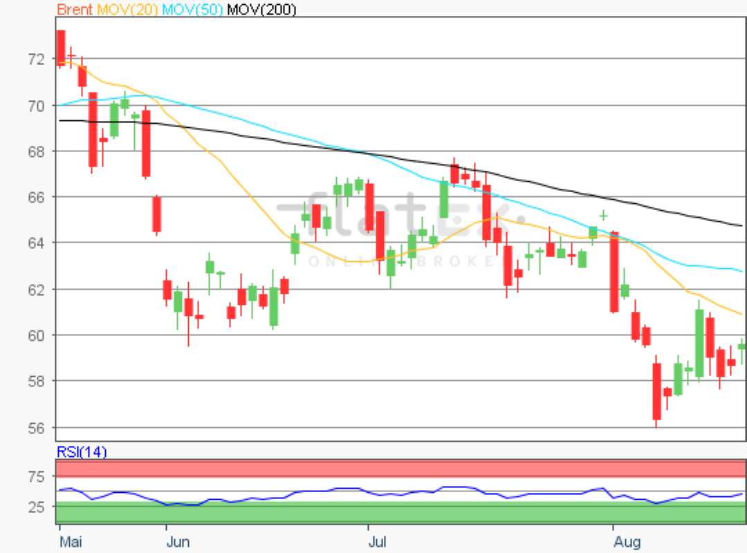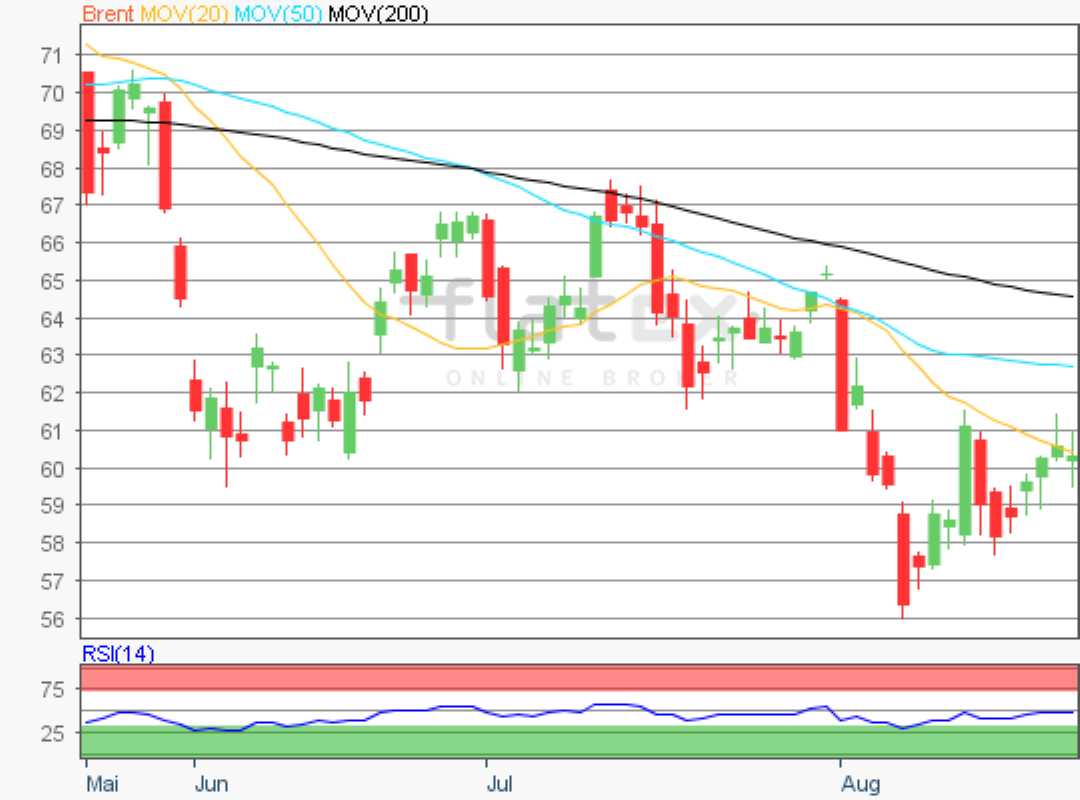 Der Preis für ein Fass der Nordseesorte Brent im Oktober-Kontrakt an der Terminbörse ICE konnte sich zum Wochenschluss von den letzten Abgaben etwas erholen.
