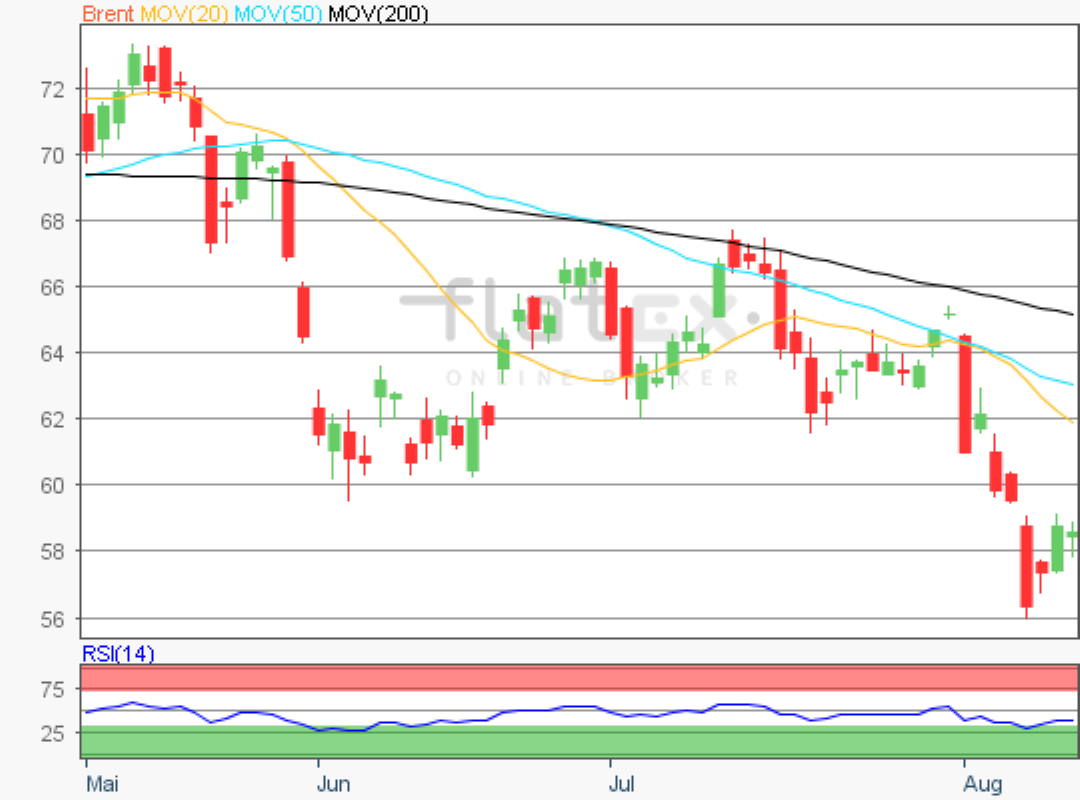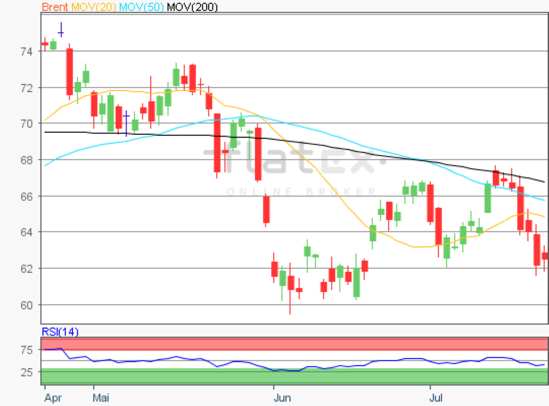 Der Preis für ein Fass Rohöl der Nordseesorte Brent im September-Kontrakt an der Terminbörse ICE scheiterte am Donnerstag am 61,8prozentigen Fibonacci-Retracement der hier nachfolgend analysierten Kursbewegung.