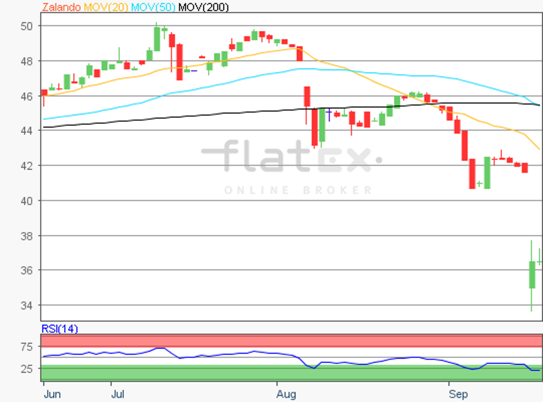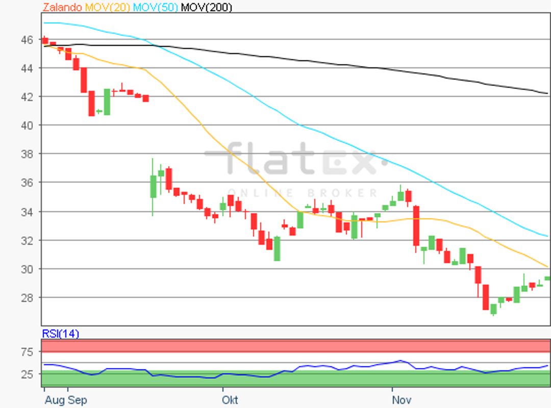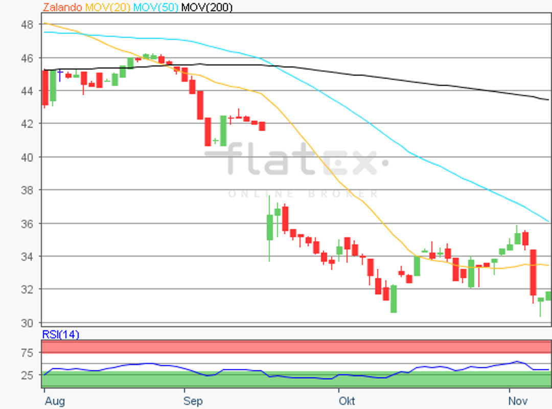 Die Aktie des MDAX-Konzerns Zalando notierte am 11. Oktober 2018 auf einem Verlaufstief von 30,18 Euro.