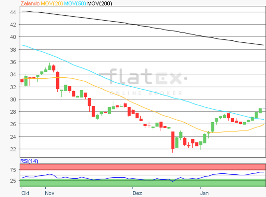 Die Aktie des MDAX-Konzerns Zalando bildete am 02. März 2018 bei 41,67 Euro ein Verlaufstief aus.