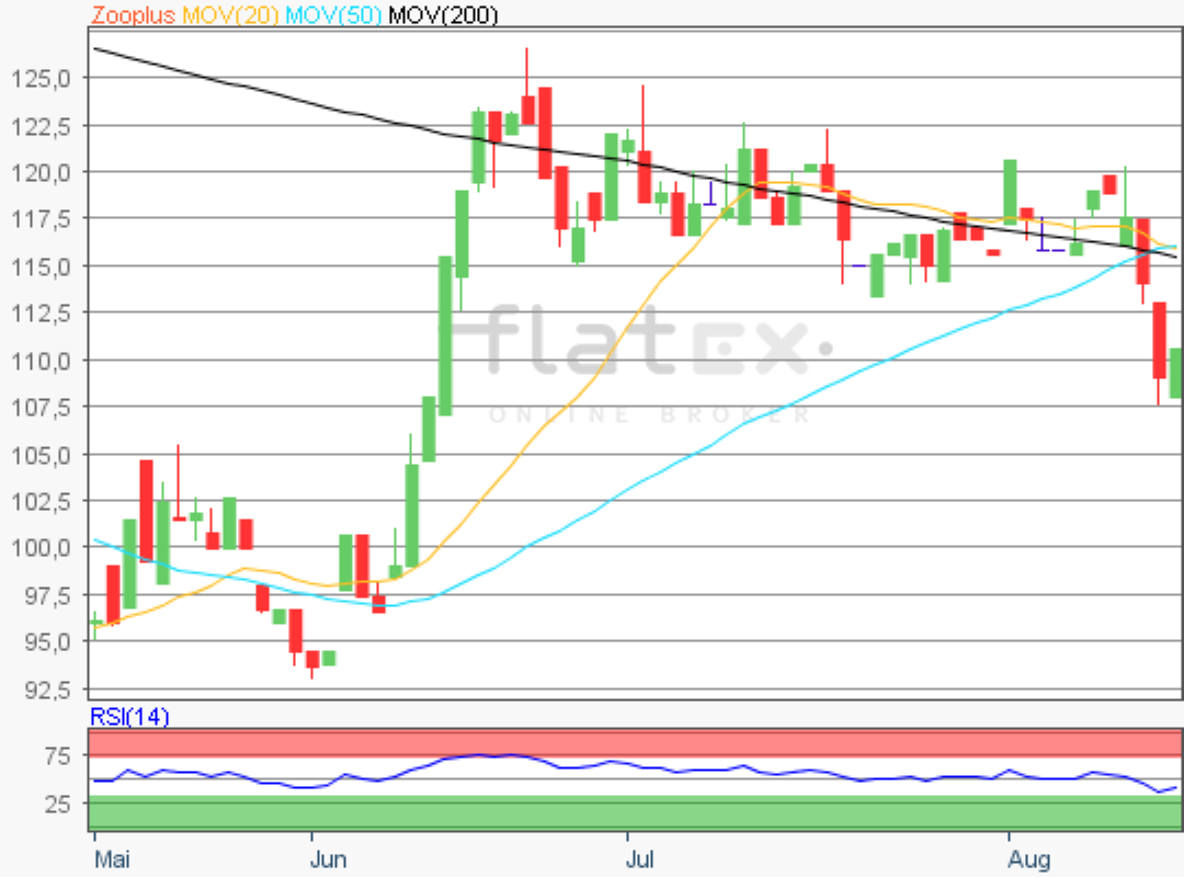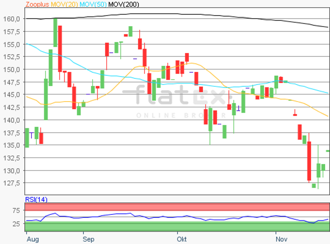Die Aktie des SDAX-Konzerns Zooplus notierte am 15. September 2017 bei 127,40 Euro auf einem letzten übergeordneten Verlaufstief.