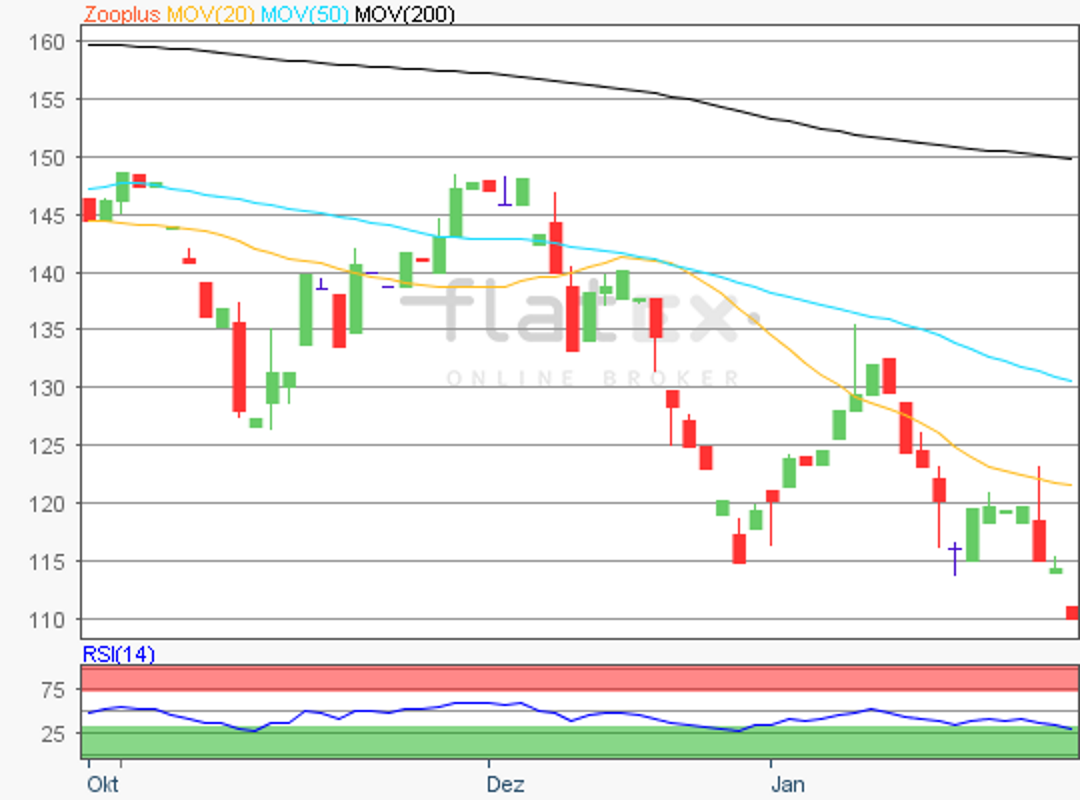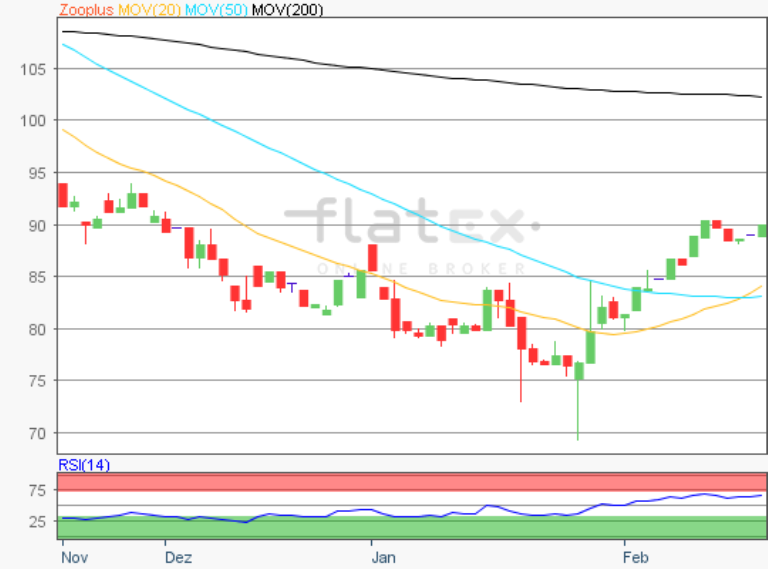 Die Aktie des SDAX-Konzerns Zooplus notierte am 28. Januar 2020 auf einem hier relevanten Verlaufstief von 69,30 Euro.