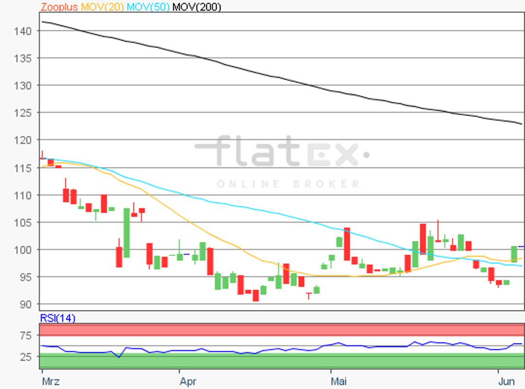 Die Aktie des SDAX-Konzerns Zooplus bildete am 26. April 2019 ein letztes Verlaufstief von 90,20 Euro aus.
