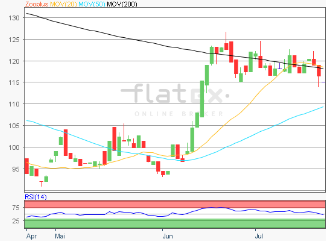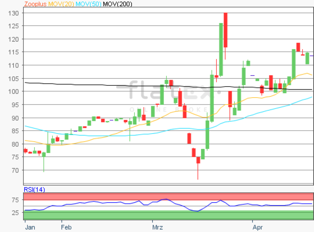 Die Aktie des SDAX-Konzerns Zooplus notierte am 04. März 2019 bei 120,80 Euro auf einem Zwischenhoch.