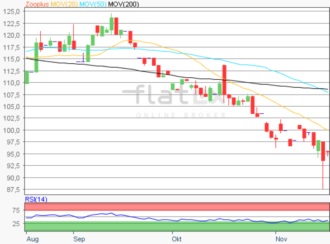 Die Aktie des SDAX-Konzerns Zooplus notierte am 26. April 2019 auf einem Verlaufstief von 90,20 Euro.