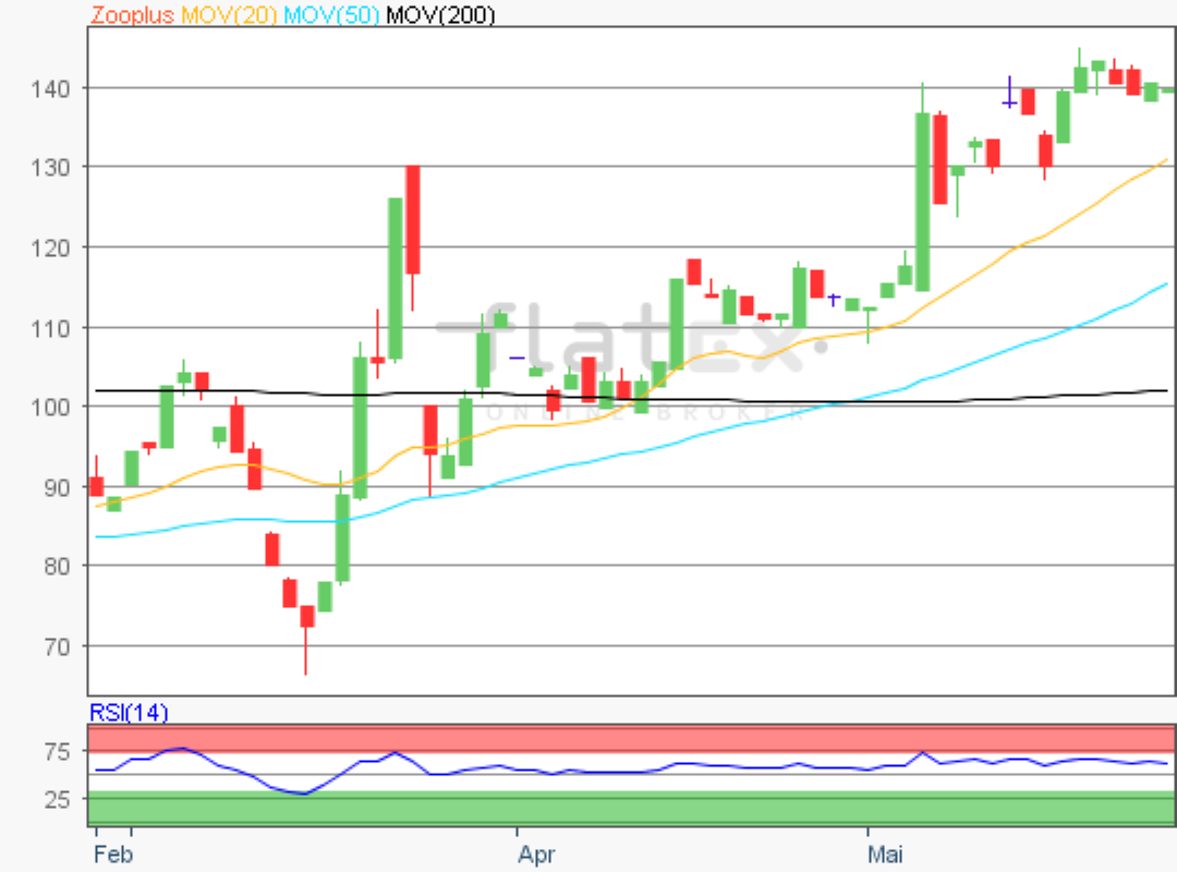 Die Aktie des MDAX-Konzerns Zooplus bildete am 25. Mai 2017 bei 200,15 Euro ein Hoch aus.